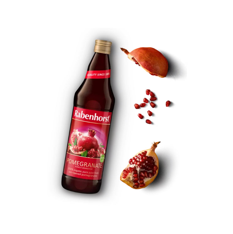 Our organic pomegranate juice contains carefully selected, sun-ripened pomegranates from the best growing areas. In the country of origin, the fruits are pressed freshly harvested into a high-quality juice and processed further at Rabenhorst.
