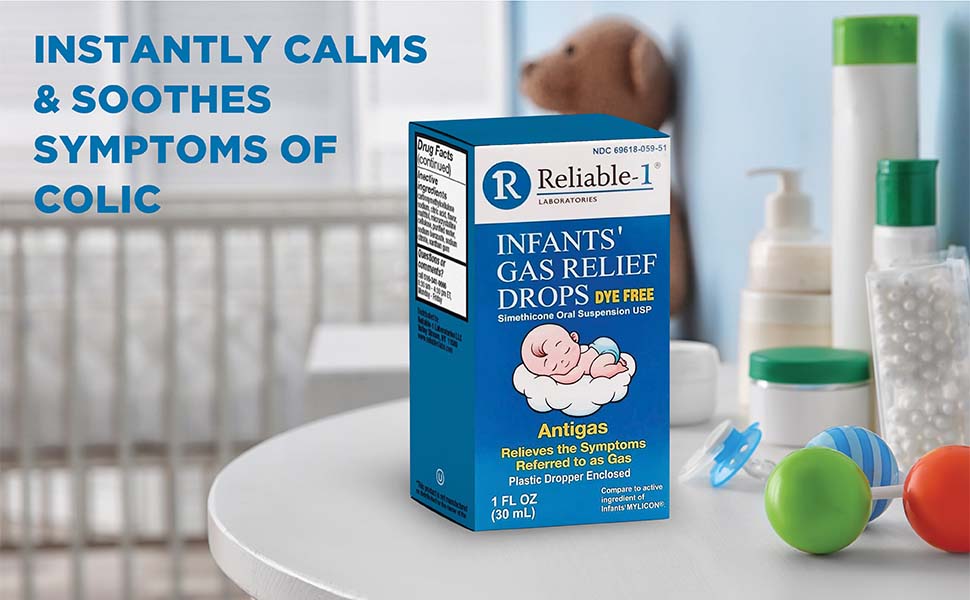 - STOMACH RELIEF Easy-to-dispense baby gas drops come with a dropper for measured dosages. Colic relief for newborns isn’t easy to find, but Reliable 1 gas relief drops soothe and calm upset tummies and provide bloating relief.