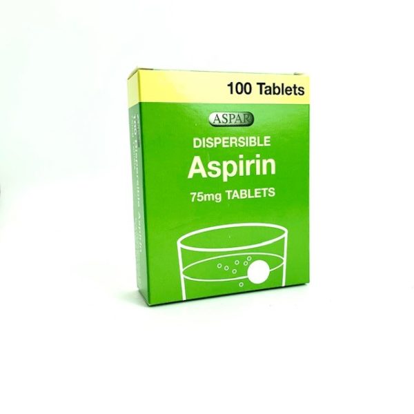 Aspirin Dispersible 75mg Tablets, also known as "baby aspirin" or "low dose aspirin", which are used to help prevent heart attacks and strokes in people who are at high risk of them.