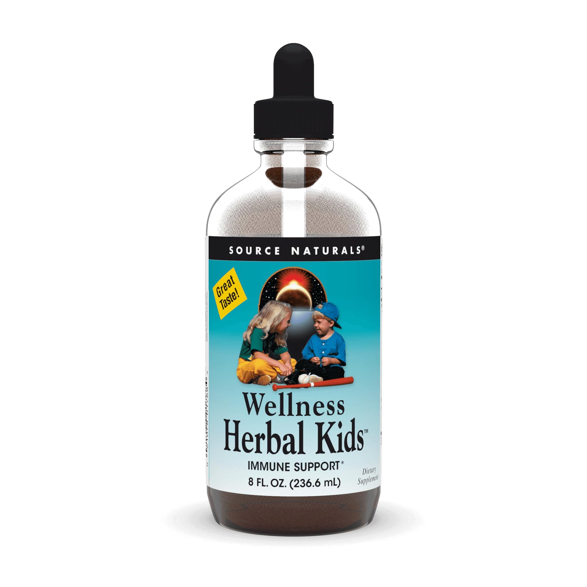 Pre-Order | Arrives in 5–10 Days – Source Naturals Wellness Herbal Kids, for Immune System Support - Contains Echinacea, Yin Chiao, Elderberry, & More - 8 Fluid oz