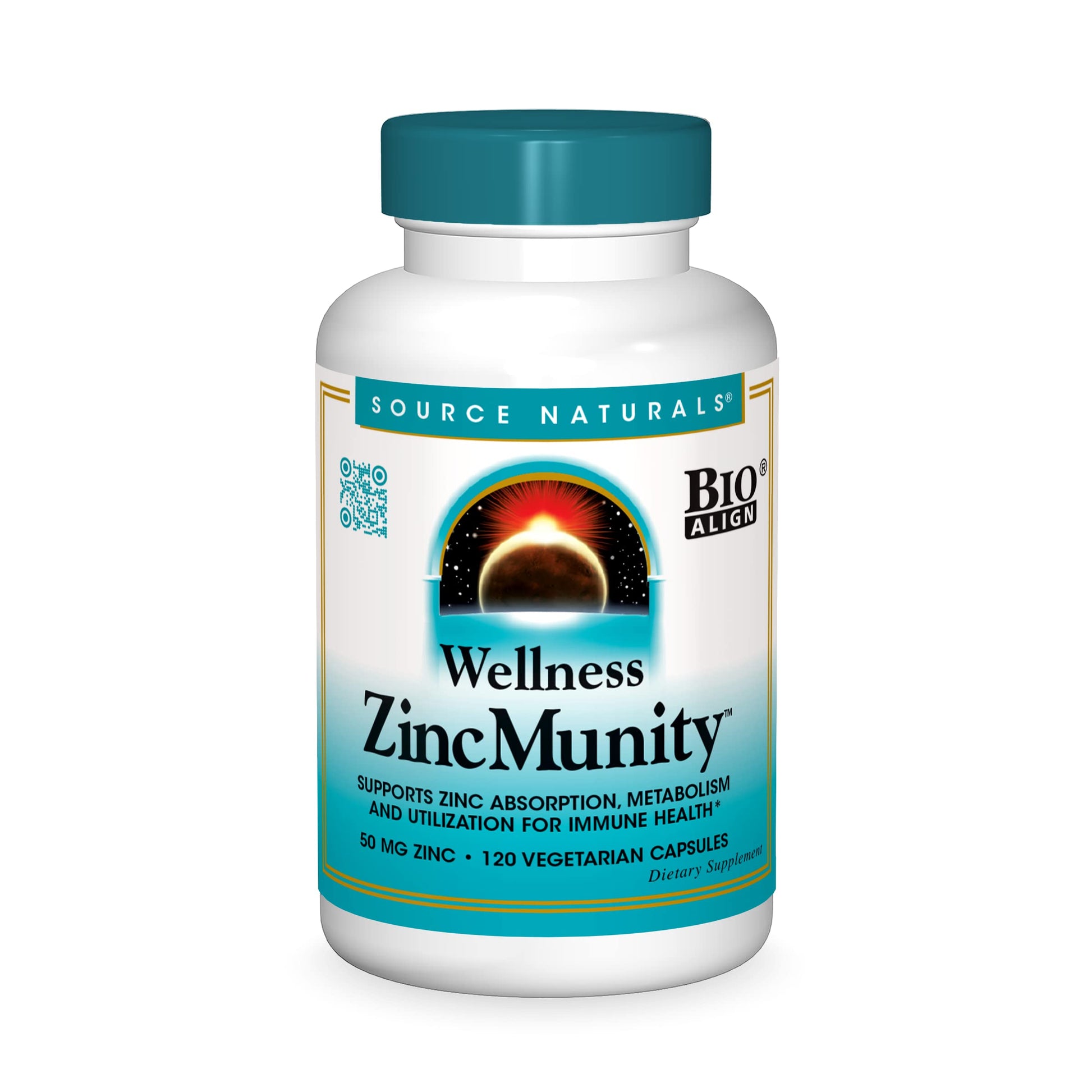 Pre-Order | Arrives in 5–10 Days – Source Naturals Wellness ZincMunity, Supports Zinc Absorbtion, Metabolism, and Utlization for Immune Health*, 50 mg Zinc - 120 Vegetarian Capsules