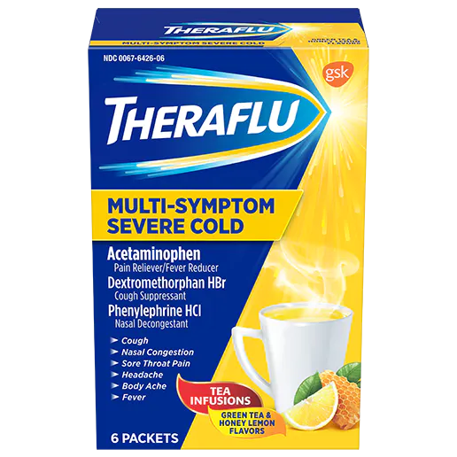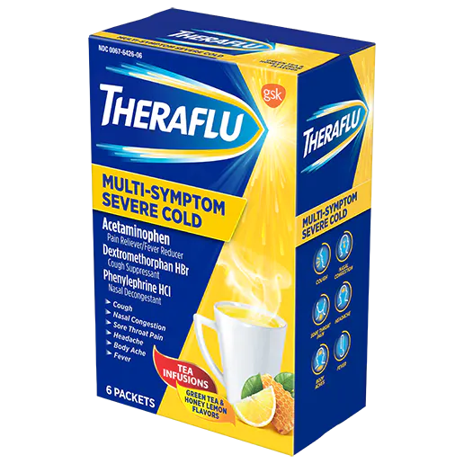 Need a medicine to help relieve cold and flu symptoms, and get back on your feet? We have you covered with Theraflu Multi-Symptom Severe Cold Hot Liquid Powder.