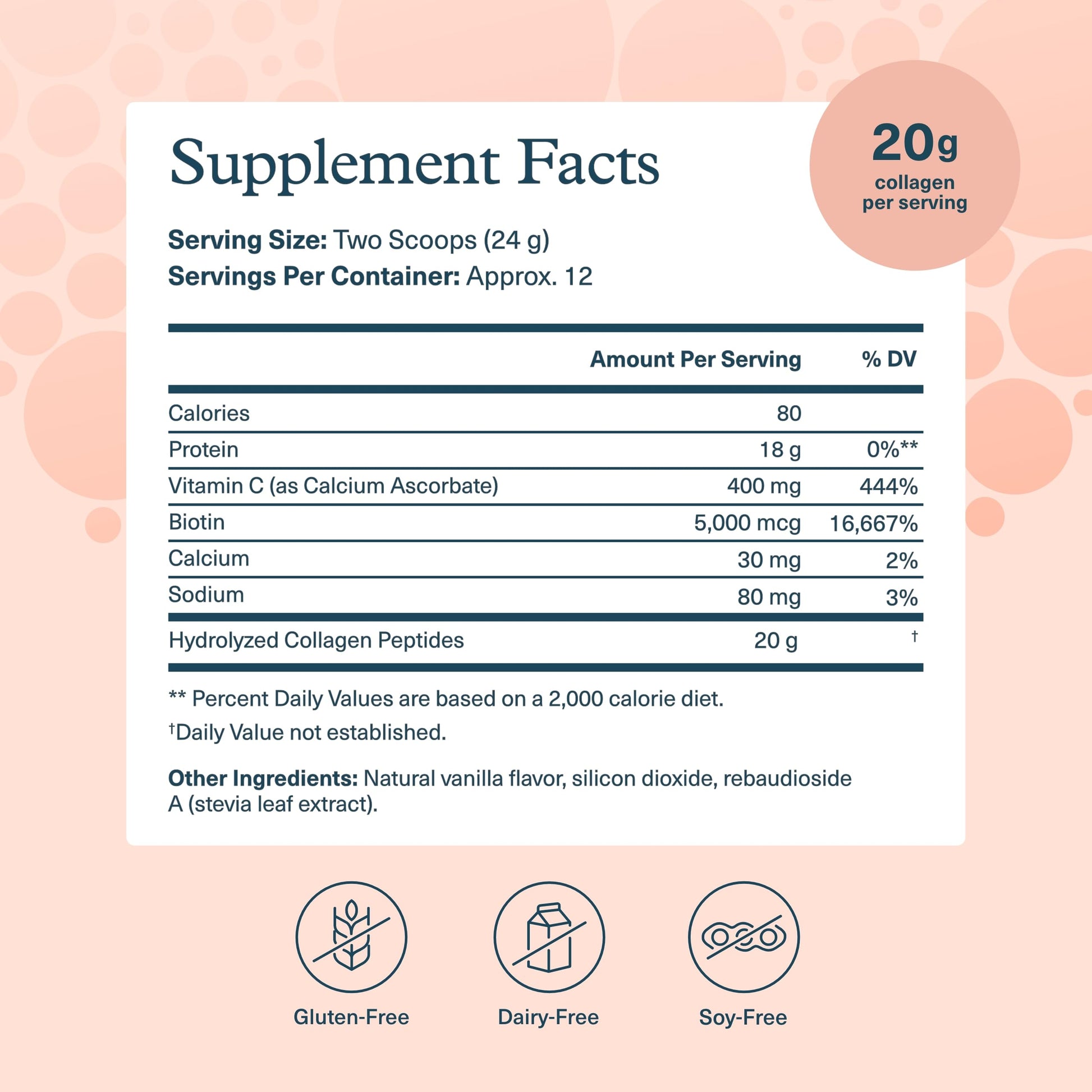 - Vitamin C & Biotin: In addition to collagen, this powder supplement has vitamin C, biotin, and 18 amino acids